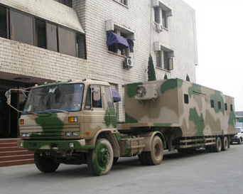 廂體由兩部分組成:固定廂與活動廂,活動廂可電動或手動推入/拉出固定廂,以適應廂體做為裸露工作,密封運輸機動平臺的要求。為保證活動廂、牽引車以及特定設備的正??煽抗ぷ?,車上配備了完善(預留)的動力保障系統(tǒng),由半掛牽引汽車發(fā)電機、半掛牽引電瓶、發(fā)電機組(預留)、外接380 V/50Hz 交流電構成。幾種動力方式互為補充??缮炜s套廂結構以及基于工作狀態(tài)下設備裸露,機動運輸狀態(tài)下設備密封(設備處于固定狀態(tài))這種應用要求而在廂式類上延伸開發(fā)的類似結構在國防武器裝備的運輸使用上具有廣闊的應用前景。